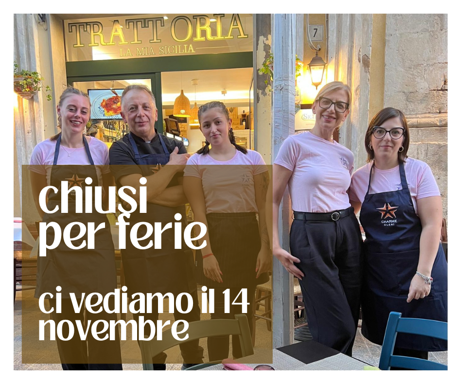 La Mia Sicilia è una tipica trattoria siciliana dove si rispetta il susseguirsi delle stagioni per ritrovare i prodotti i sapori i profumi del territorio e cucinati come da tradizione. La ricerca di materie prime e sempre costante mantenendo in prima linea i nostri prodotti come i grani antichi, le carni esclusivamente dell’azienda di famiglia, l’agnello, il maiale ibleo, i nostri vitelli locali allevati ancora al pascolo. Protagonista anche il pesce anche questo cucinato rispettando stagionalità e ricette della tradizione. Vini siciliani e nazionali, ed i dolci e completano la proposta della trattoria palazzolese
